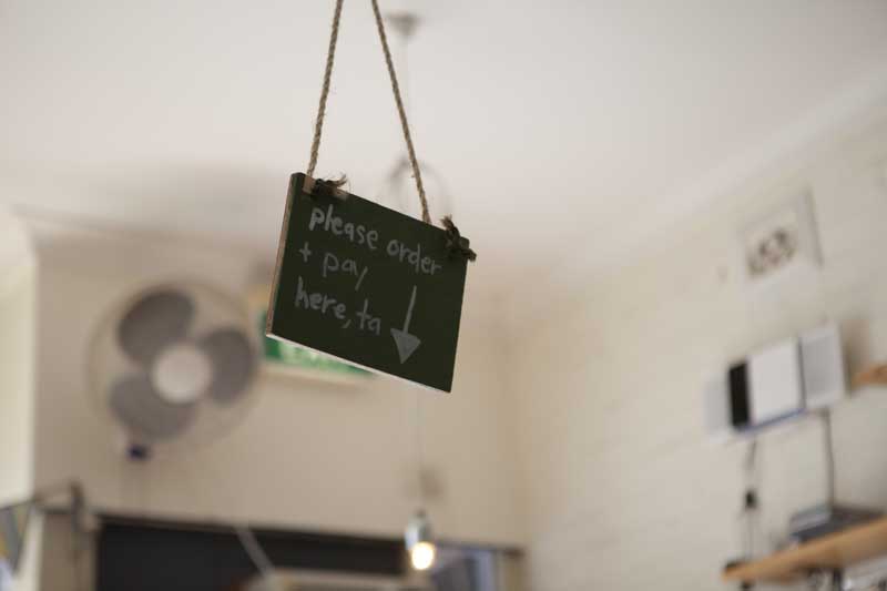 Glee in Newcastle is a quaint cafe in what seems to be a historic terrace house like most of the shops on Darby st. Its furnished with old couches handmade pillows, battered timber tables, fresh flowers in jars and a walls lined with coffee. There are so many things to take notice of in this small cafe, such as the paper cranes, hanging bunting, hand stitched art work and cartoon lined wall. The cafe was quite and we enjoyed a coffee and toasted vegie panini while looking around at the decor.